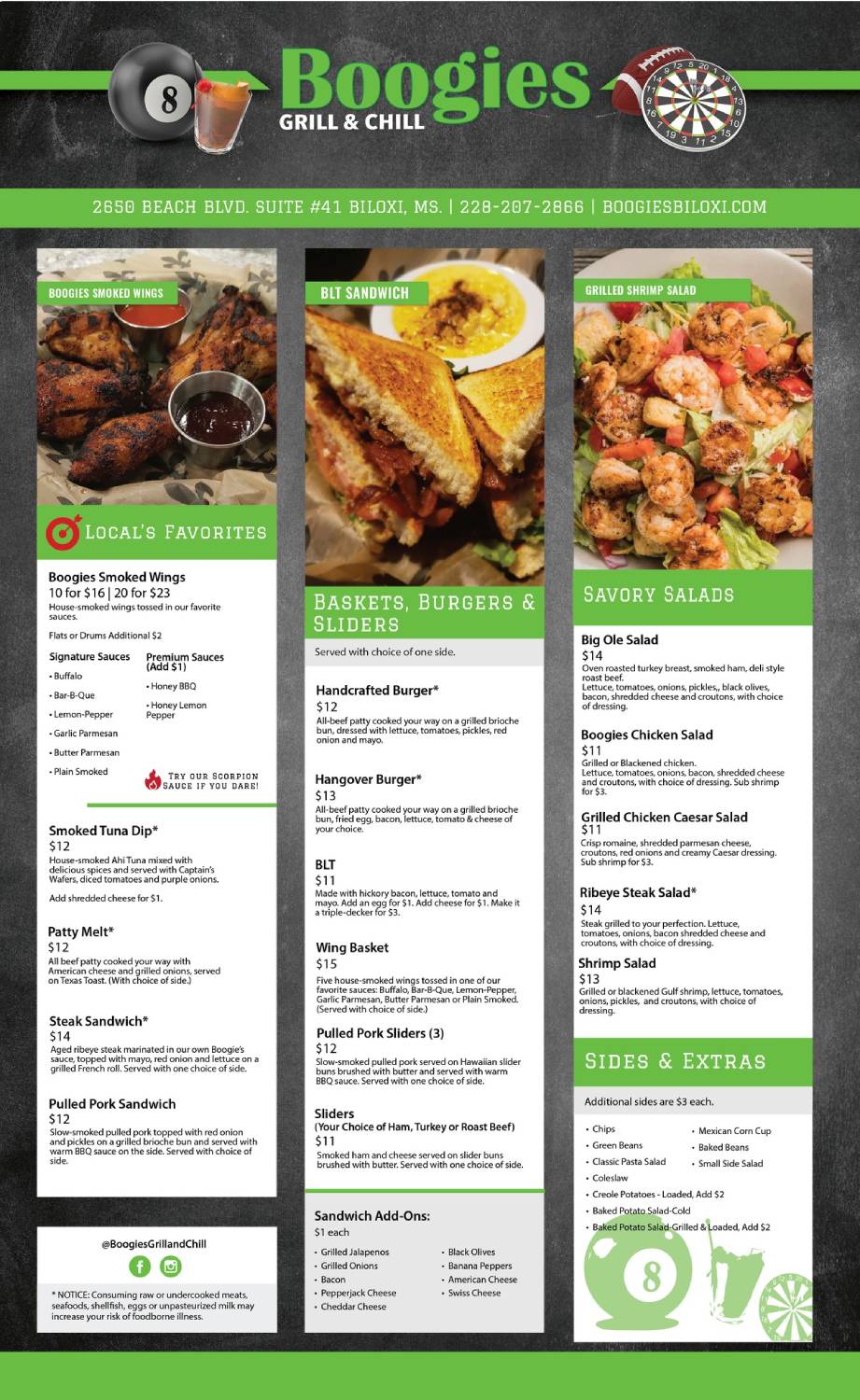 Boogies Restaraunt Menu Boogies Restaraunt Menu